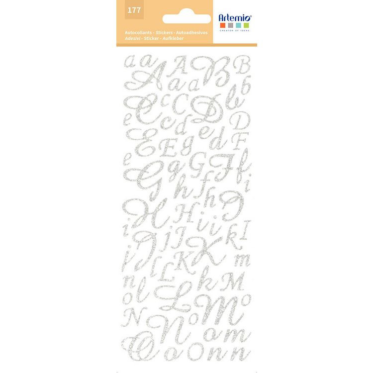 Vente flash ⭐ Artémio Sticker Alphabet Script Argenté Pailleté 177 Lettres ✨