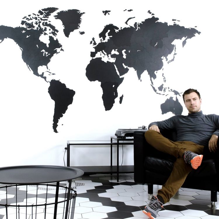 Acheter ???? MiMi Innovations Decoration Carte Du Monde Murale Bois Noir 280×170 Cm ✔️