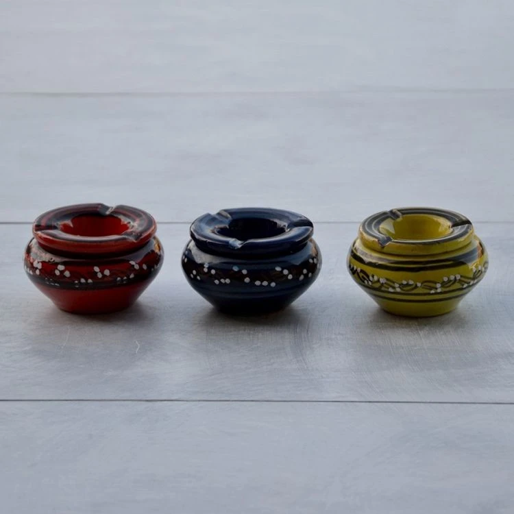 Nouveau 👏 YODECO Lot De 3 Cendriers Tatoué Rouge, Bleu Et Vert Anis – Mini Modèle 🧨