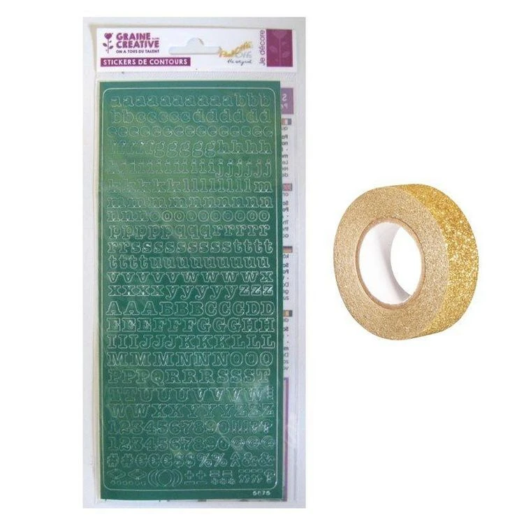 De gros 💯 Youdoit Stickers Alphabet Vert 10,5 X 23,2 Cm + Masking Tape Doré à Paillettes 5 M 😉